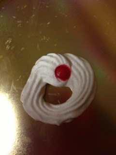 Oh, and these are very fragile. The tin fell off the counter, and now I have meringue wreath bits to give people.