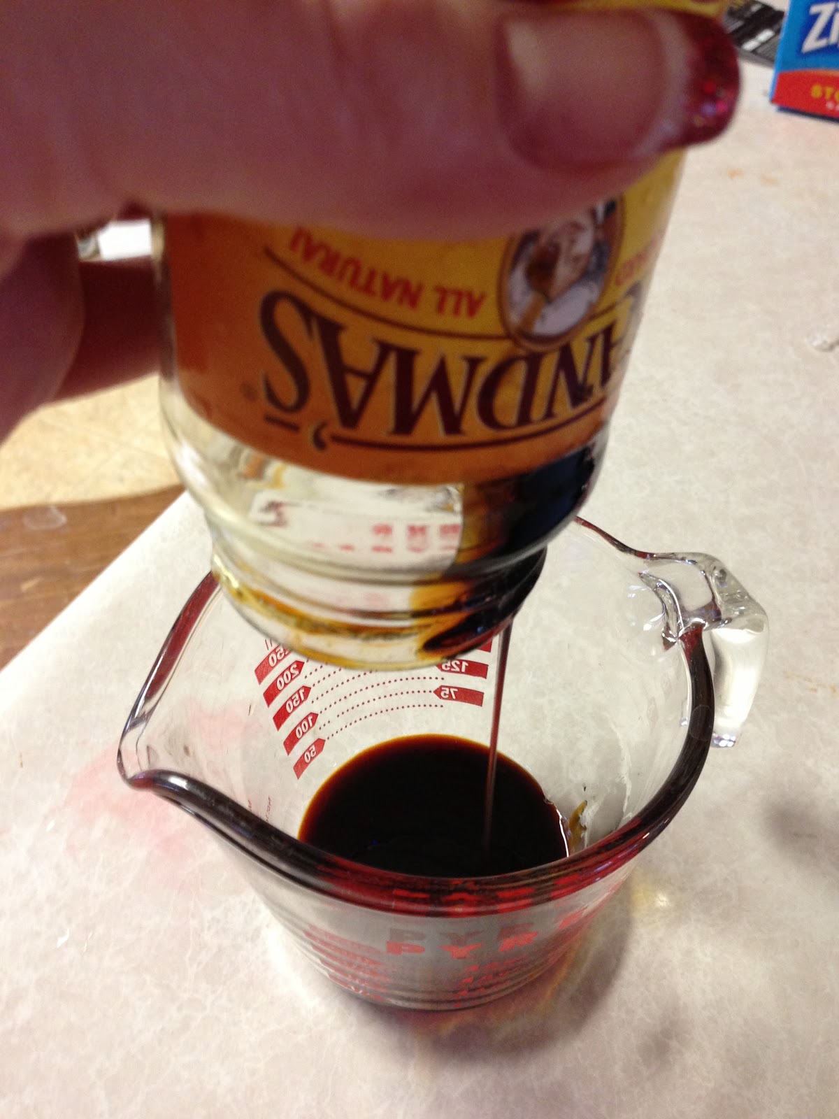 Oh, and if you do a lot of holiday baking like I do, just do yourself a $2.35 favor and buy the new bottle of molasses. Otherwise, half your prep time is going to wasted doing this: