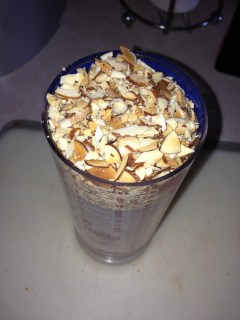 I used a coffee grinder to grind the almonds. The first batch was pretty fine, the second was okay, but by the third, I figured I should balance things out and I did a rough chop.