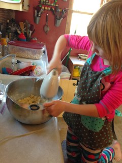 Holding with one hand, stirring with the other. At first, I was afraid I was going to make scrambled eggs with nutmeg, but things started coming together.