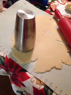 Once I mixed up the the filling, I took out the dough and rolled half of it. Now, my recipe says to use the rim of a canning jar. Well, gosh oh golly gee, I’m fresh out. So this would have to do: