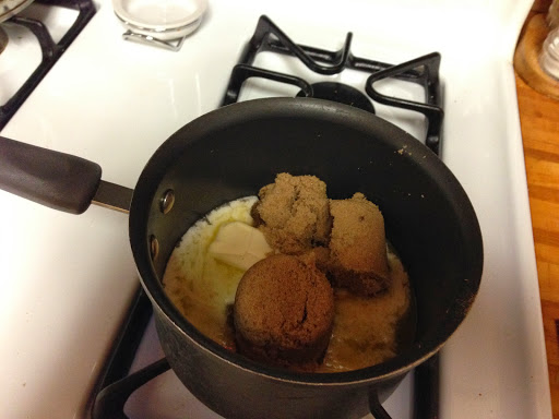 After it’s boiled two minutes, you pour it on the graham crackers and sprinkle with nuts. Then it goes in the oven.