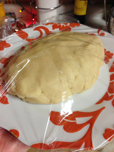Into the fridge it went while I mixed up the filling. I had to buy almond paste, which must be made from 14K almonds, because this stuff is expensive.