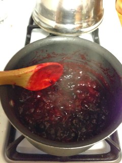 You start out with cranberries, sugar, orange zest (because everything tastes better with orange zest), and some water, and after 15 minutes or so, you have your filling.