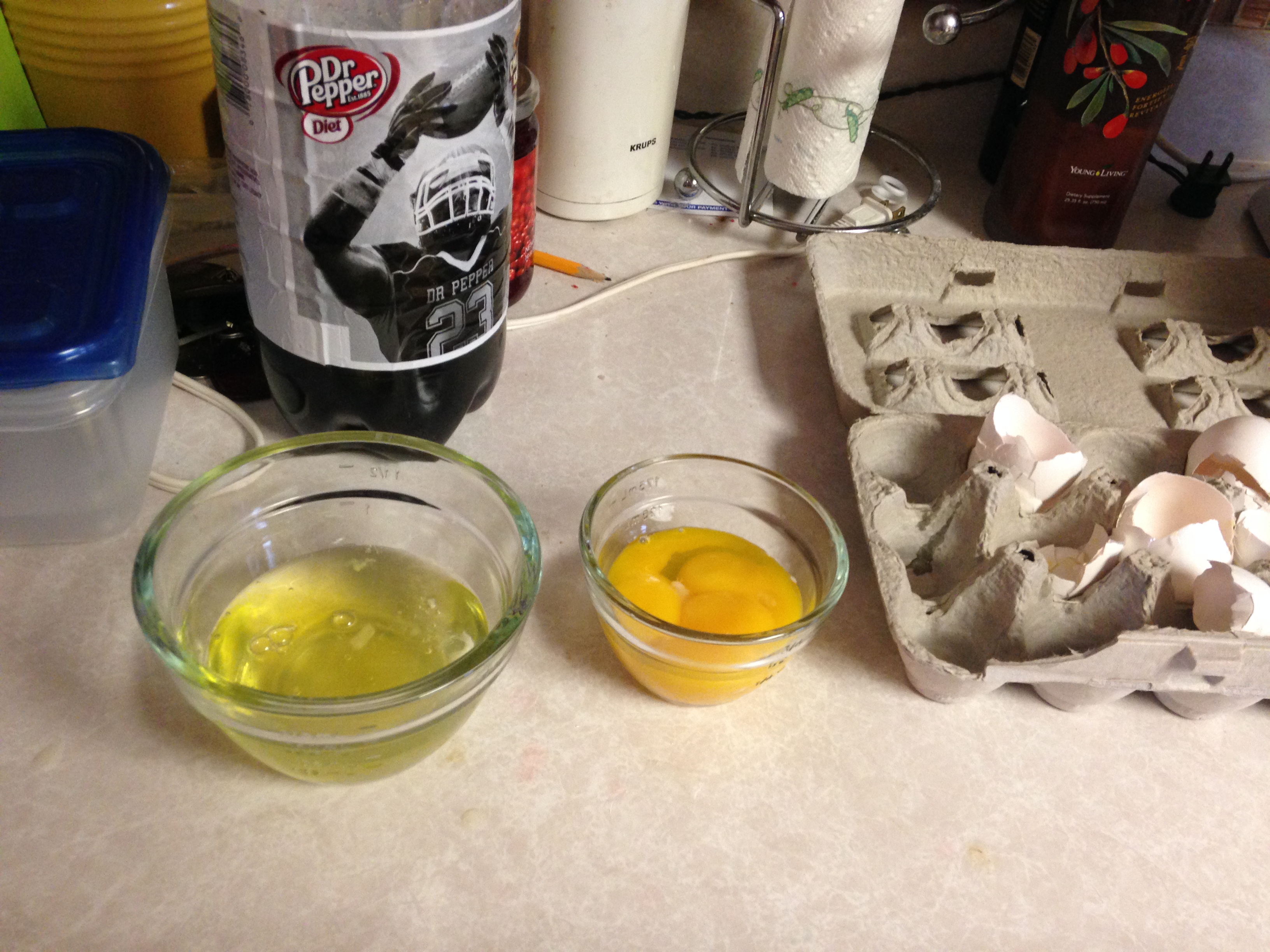 I separated my eggs, keeping the yolks for another recipe I have my eye on. I put four egg whites and the caster sugar inside Old Trusty.