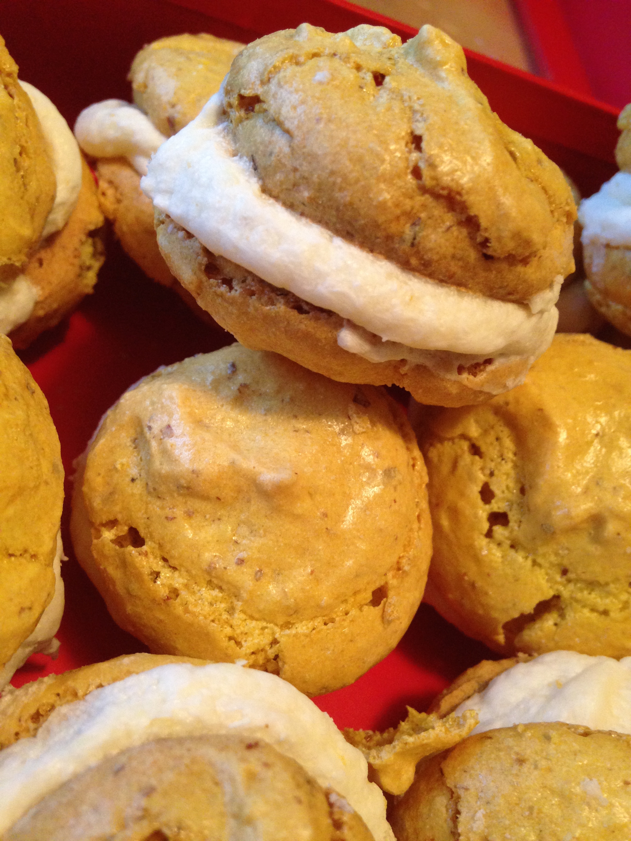 I then put that through another pastry bag and squirted my lemony-goodness on a cookie, topping it with another. I should have had more restraint so these would look prettier, but come on, it’s lemon filling. If a little is good, more is better. Right Christina?