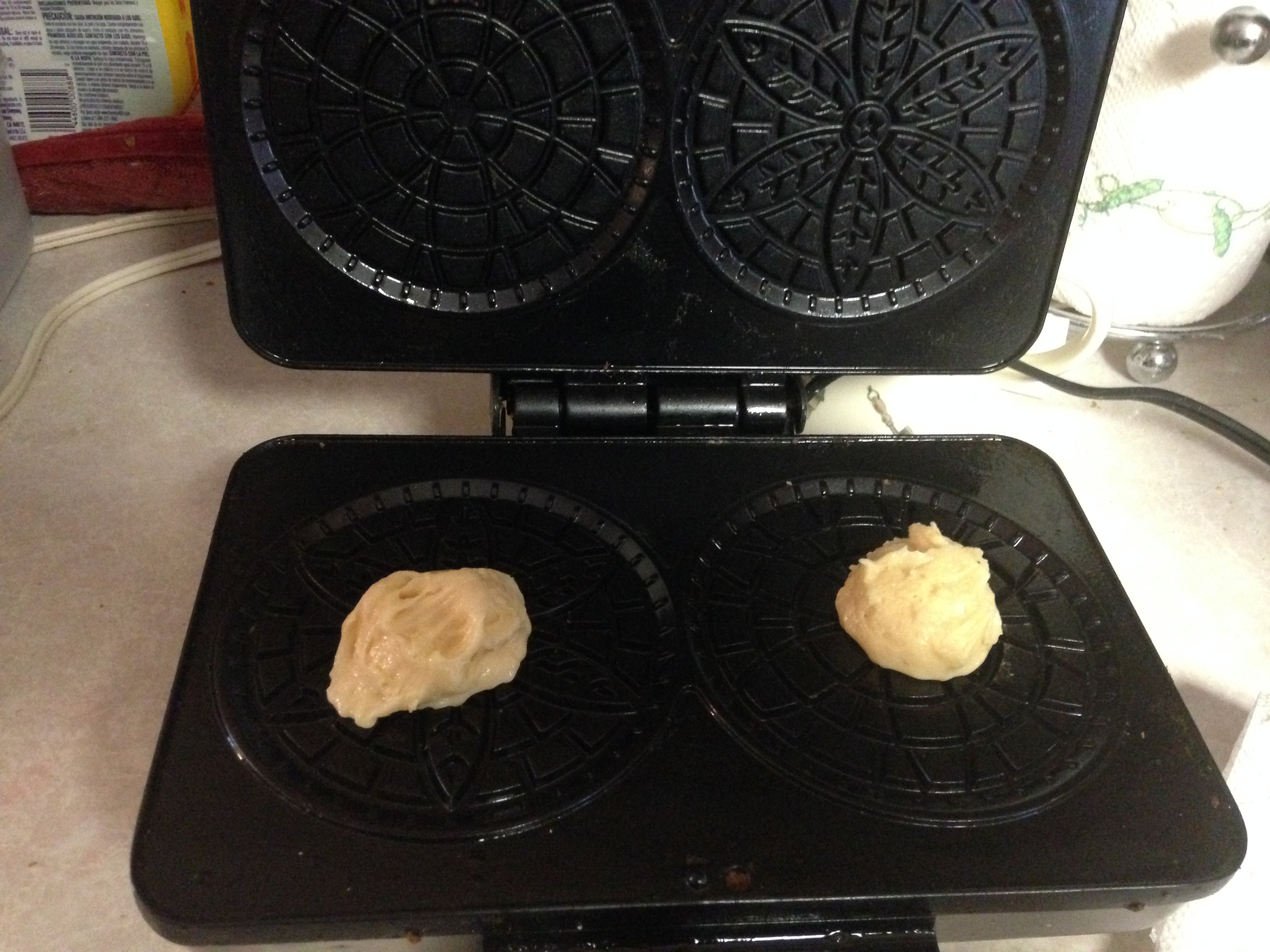I used my cookie scoop to do these, making sure they were centered in the middle of the hot iron. (Oh, and I generally put a little coconut oil on it before I start, just to grease the iron.)