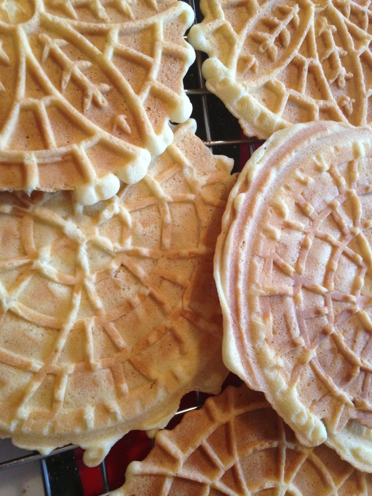 Pizzles are a wafer cookie from Italy. I made them last year, and they were divine.