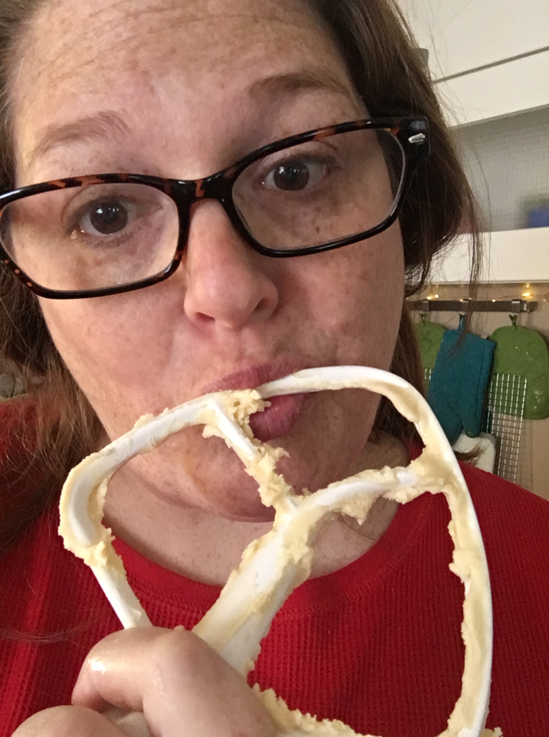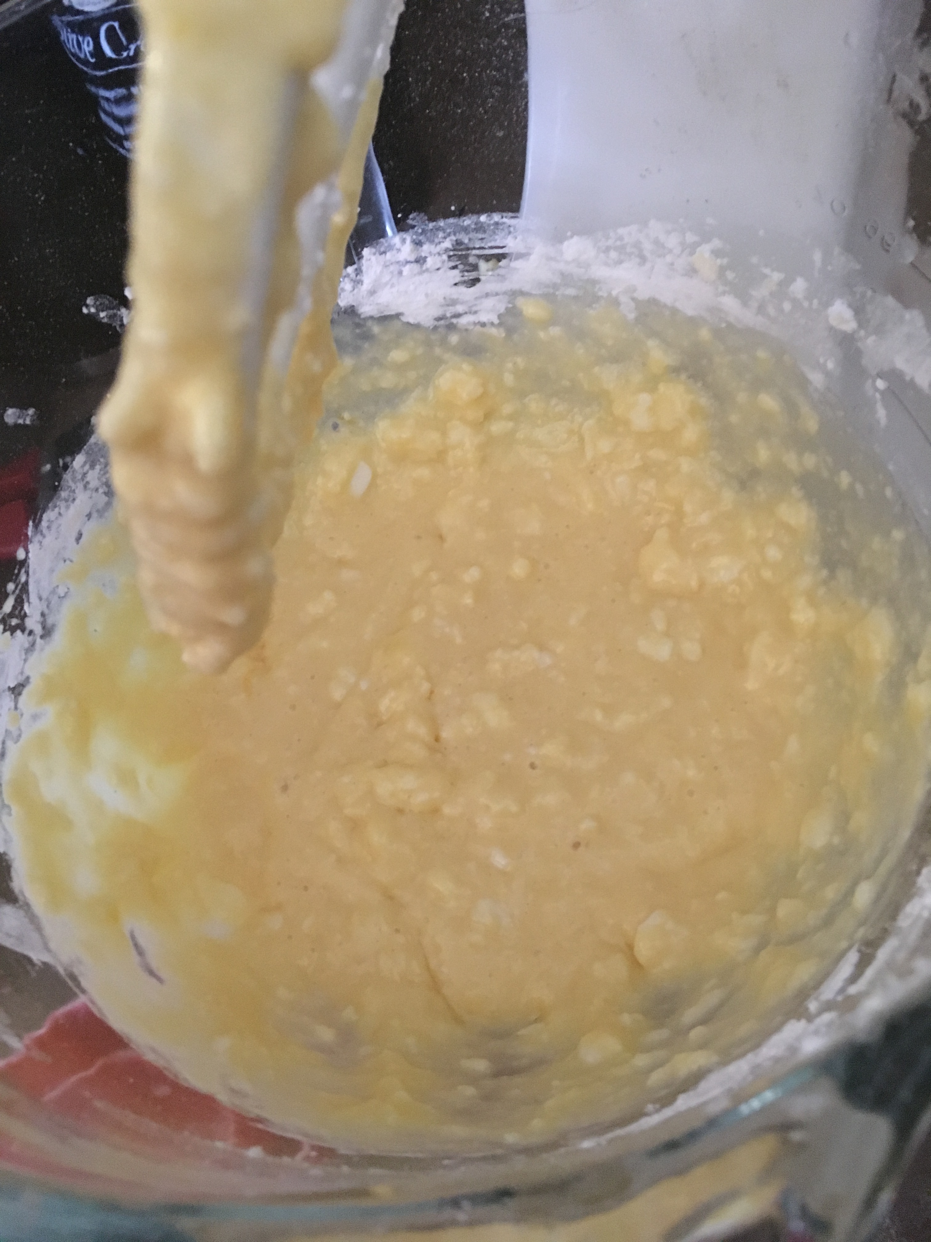 It’s pretty simple really. Then you add the cornstarch and flour, and mix it all together. Again, I needed more flour than the recipe calls for…I used about another 1/3 of a cup. And when I was all done mixing, I looked for my beater-lickers, but alas, they were all at school.