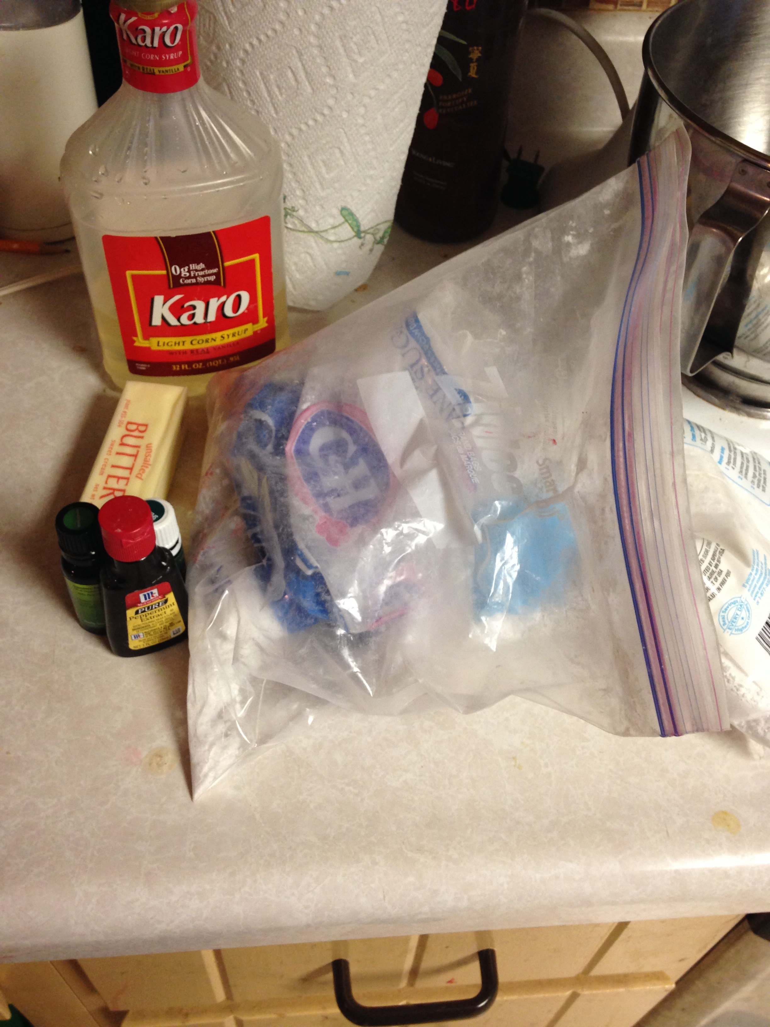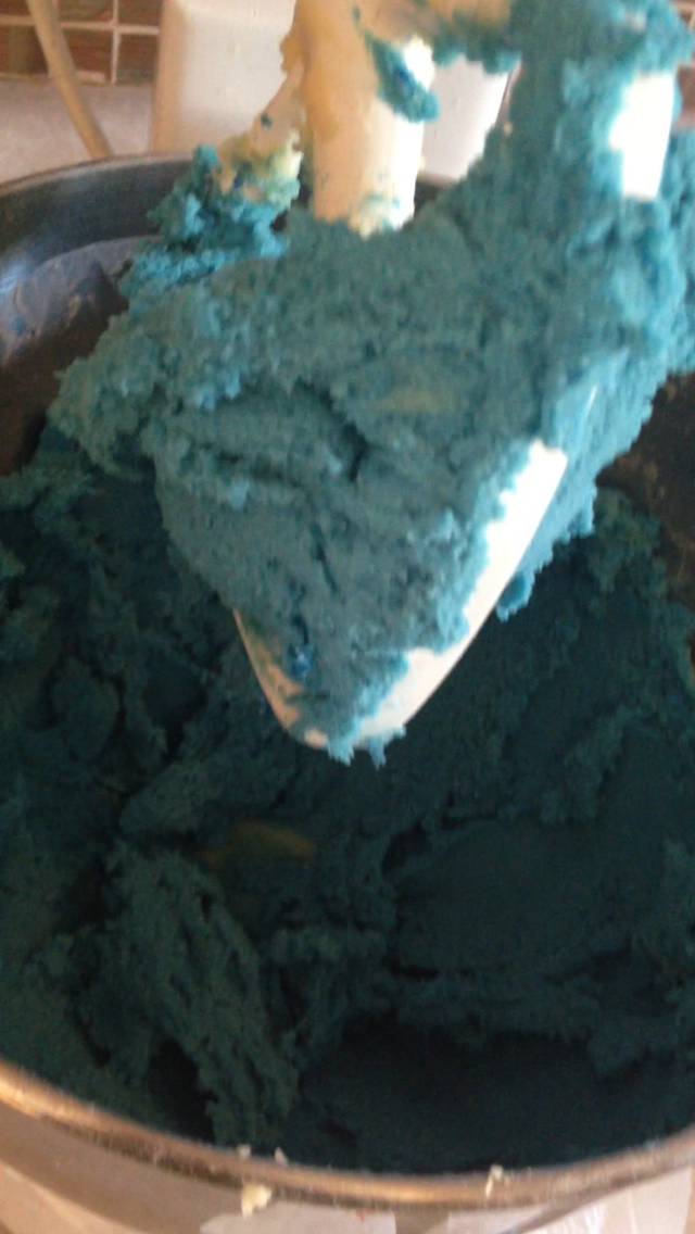 It’s pretty simple really. Then you add the cornstarch and flour, and mix it all together. Again, I needed more flour than the recipe calls for…I used about another 1/3 of a cup. And when I was all done mixing, I looked for my beater-lickers, but alas, they were all at school.